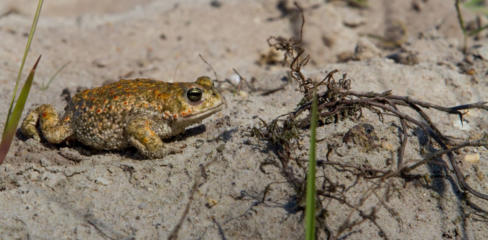 Auf unserem Gelände entstehen durch den Fahrbetrieb immer wieder Pfützen und Feuchtbereiche – ideale Lebensräume für Amphibien.